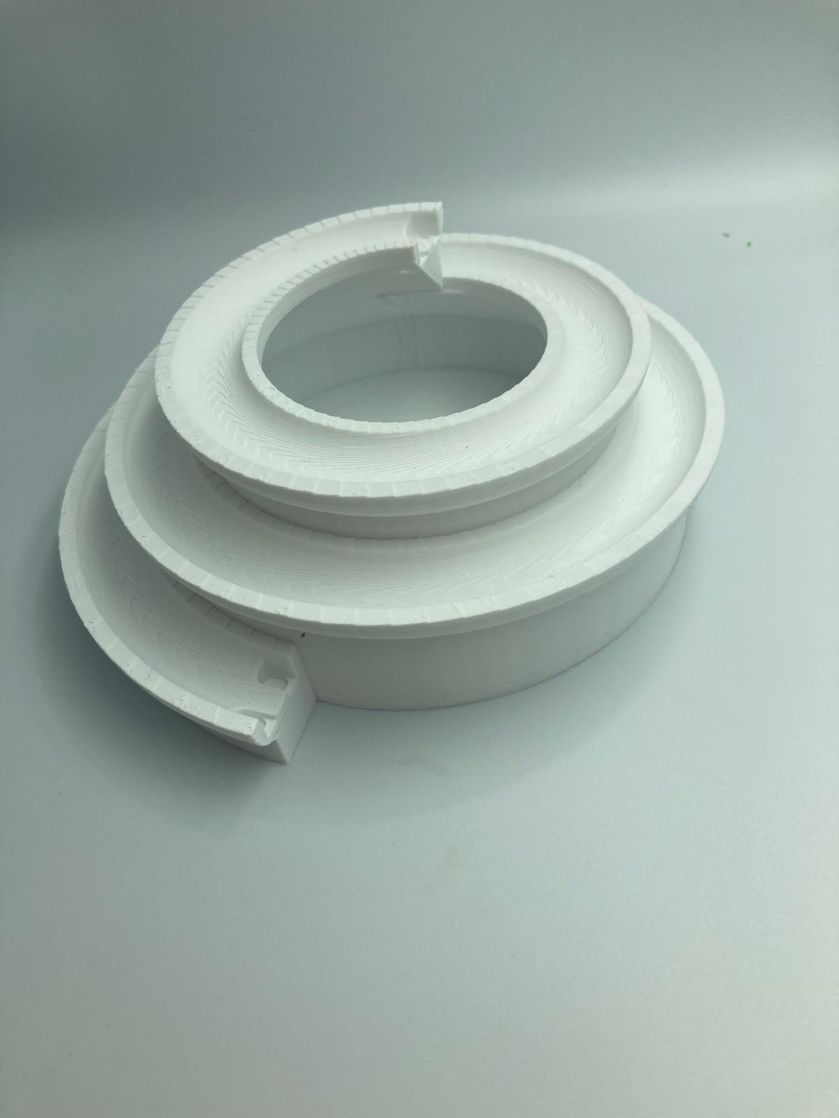 Grote ronde ’taart’ waar de balletjes omheen draaien.